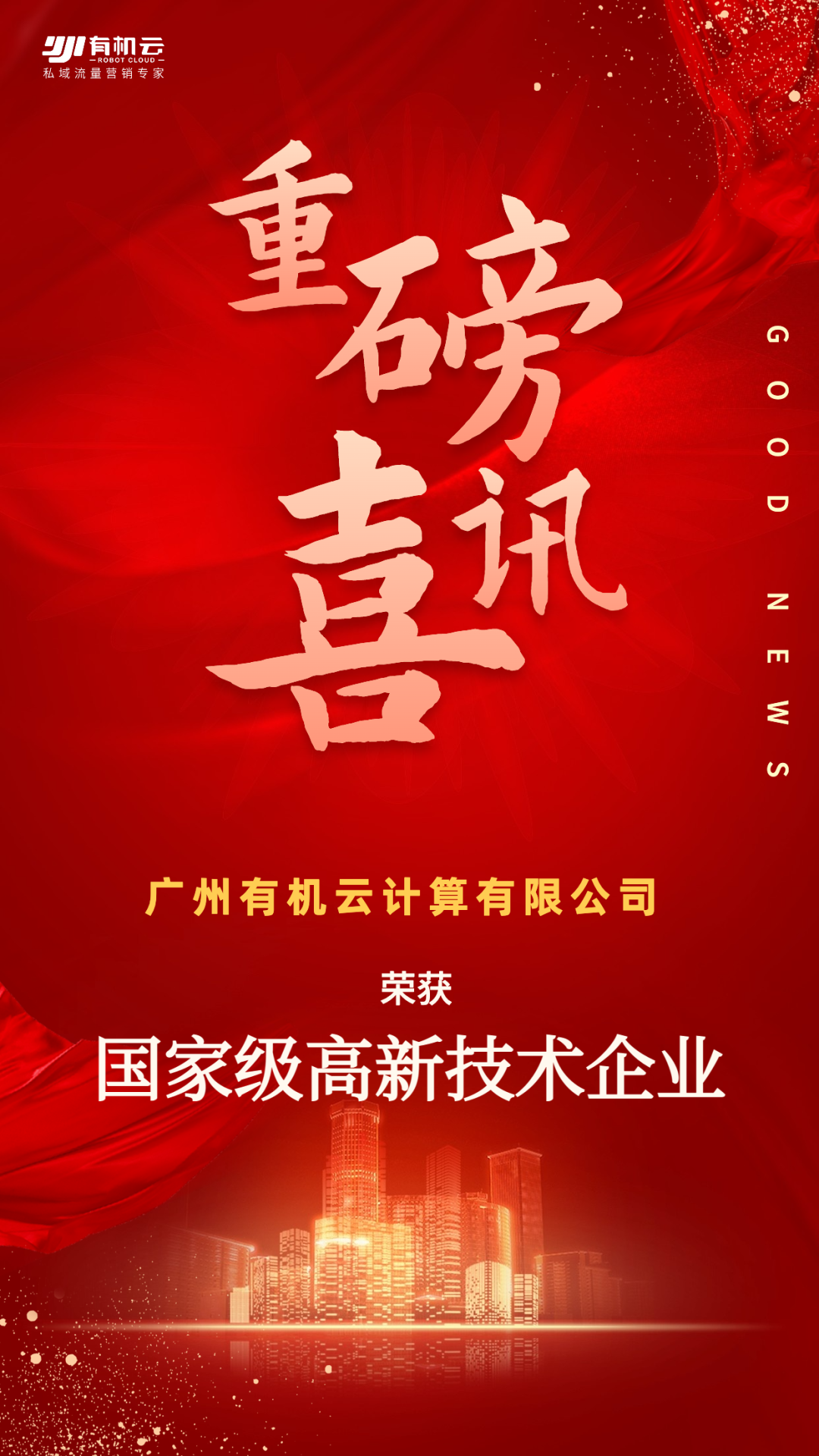12月20日,科技部火炬中心官网发布了《关于对广东省2021年认定的第二批高新技术企业进行备案公式的通知》,有机云荣获国家高新技术企业称号!